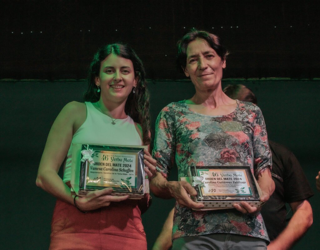 El Ministerio del Agro y la Producción entregó la Orden del Mate 2024 a dos mujeres que están transformando la cadena yerbatera: Carolina Gutiérrez Zaldivar, la única presidenta de una cooperativa de yerba mate orgánica en Misiones, y Vanesa Carolina Schoffen, investigadora del Instituto Nacional de Tecnología Agropecuaria (INTA), quien ha sido fundamental en el mejoramiento genético de la yerba mate. Ambas fueron reconocidas en el marco de la 46° Fiesta Nacional e Internacional de la Yerba Mate, por su compromiso con la innovación, la sostenibilidad y la inclusión de nuevas prácticas que benefician a los productores yerbateros de la región.