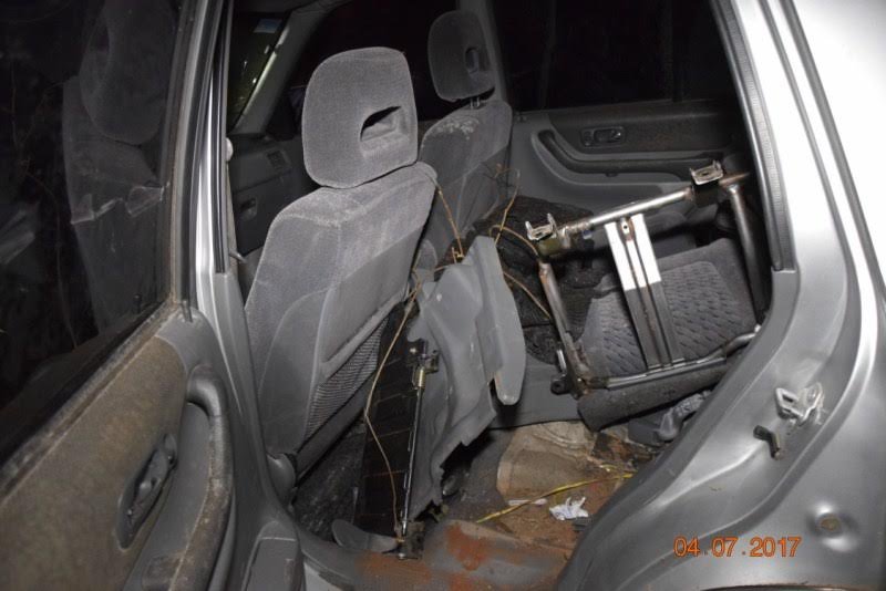 Operativo en Jardín América. Los investigadores de la UR-IX incautaron un vehículo Honda CRV-robado en Buenos Aires-cuyo interior estaba reacondicionado para el transporte de estupefacientes. El rodado estaba oculto entre malezas.