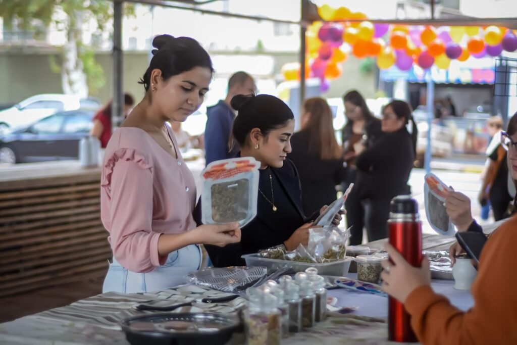 La propuesta abarcó una diversidad de rubros que reflejó el perfil de los participantes, con bijouterie, pizzas caseras, marroquinería, decoración textil y productos de bienestar y salud, entre otros.
