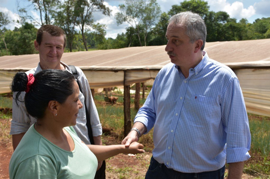 El gobernador, Hugo Passalacqua visitó este viernes la chacra de la productora Silvina Sanabria en el paraje Yacutinga, municipio de Gobernador Roca, donde recorrió la veintena de invernaderos en los que Silvina produce morrones, tomates, pepinos, rúcula y cebolla de verdeo.