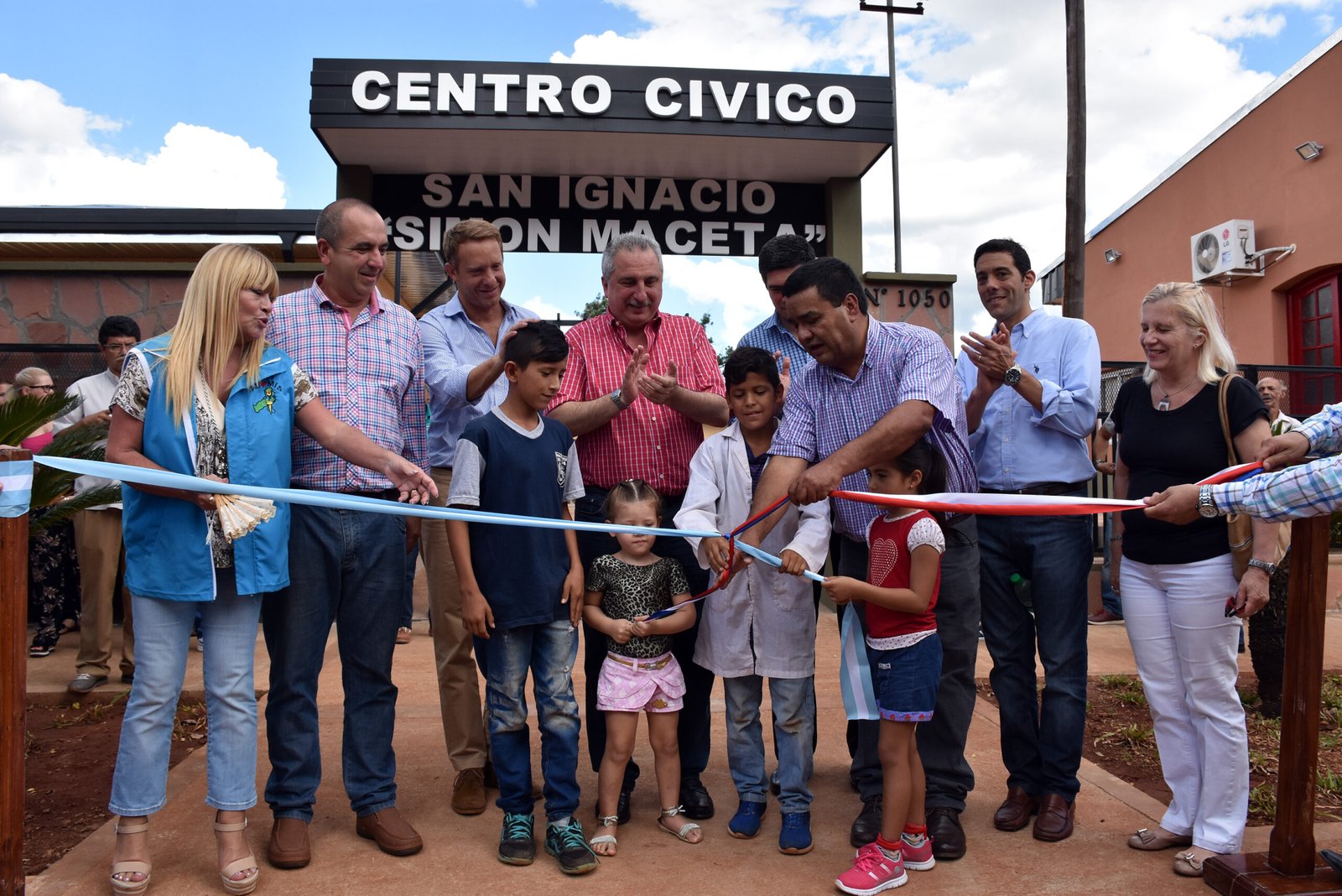 El gobernador Hugo Passalacqua dejó inaugurado este viernes en horas de la tarde un Salón de Usos Múltiples construido a partir de la Dirección de Arquitectura de la Provincia y el edificio del Centro Cívico de San Ignacio, que consta de tres módulos donde funcionarán un Juzgado de Paz, el Registro de las Personas y dependencias del Ministerio del Agro, el Instituto de Previsión Social (IPS) y de Agricultura Familiar de la Nación.