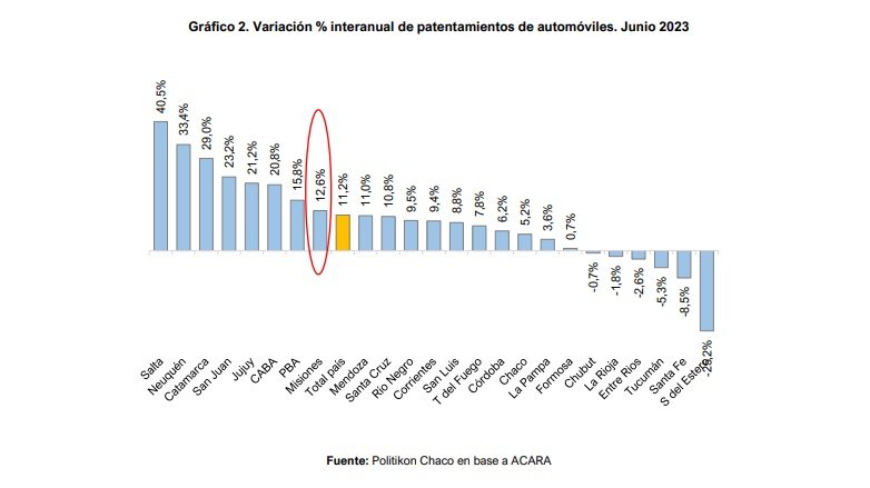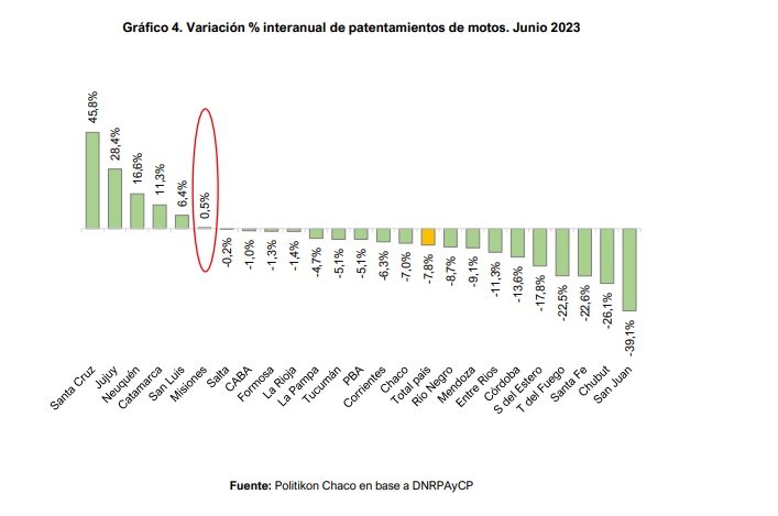 En el mes de junio, los patentamientos de autos y de motos en Misiones tuvieron expansiones en diferentes niveles. En ambos casos, registró el mejor desempeño entre las provincias que conforman el noreste argentino, detalla un informe de la consultora Politikon Chaco en base a datos de ACARA y la DNRPAyCP.