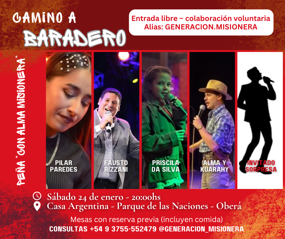 La peña se realizará el viernes 24 de enero, a partir de las 20 horas, en la Casa Argentina, ubicada en el Parque de las Naciones de Oberá, un espacio emblemático para la cultura y la identidad misionera.