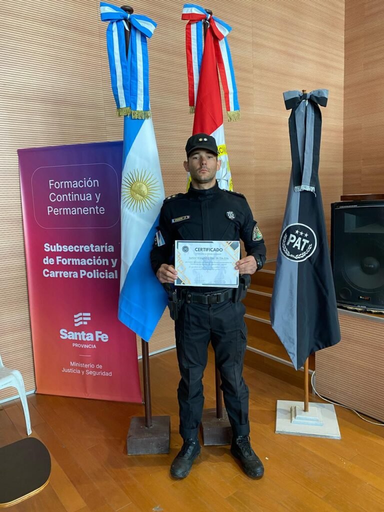 En paralelo, el Oficial Ayudante Junior Kreuning, de la Comisaría de San Javier, perteneciente a la Unidad Regional VI, fue el primer policía de Misiones en participar y aprobar el Curso Nacional del Grupo de Apoyo Táctico (GAT), desarrollado en el Batallón de Arsenales 603 de Fray Luis Beltrán, dictado por la Policía de la provincia de Santa Fe. Esta formación, de cuatro semanas bajo modalidad intensiva, reunió a 64 agentes de diversas provincias, culminando con apenas 16 efectivos aprobados, entre ellos el oficial misionero.