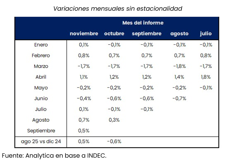 Analytica. El Estimador Mensual de Actividad Económica subió 0,5% mensual s.e. en septiembre y 5% respecto un año atrás. Un resultado que vale la pena analizar desde varias aristas para entender sus implicancias y por qué desató cuestionamientos hacia el INDEC. Veamos.