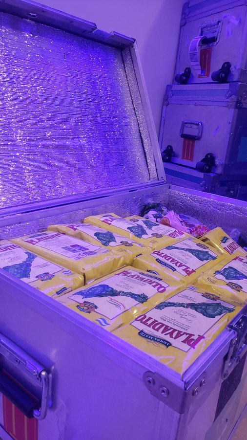 Una de las imágenes del equipaje generó sorpresa y polémica en las redes sociales. Nicolás, uno de los empleados de la Asociación del Fútbol Argentino (AFA), mostró en sus redes una de las cajas metálicas que llevaron al país árabe en las que se observan dos detalles que hacen a la alimentación diaria de la Scaloneta: contiene varios paquetes de yerba mate y bolsas con caramelos.