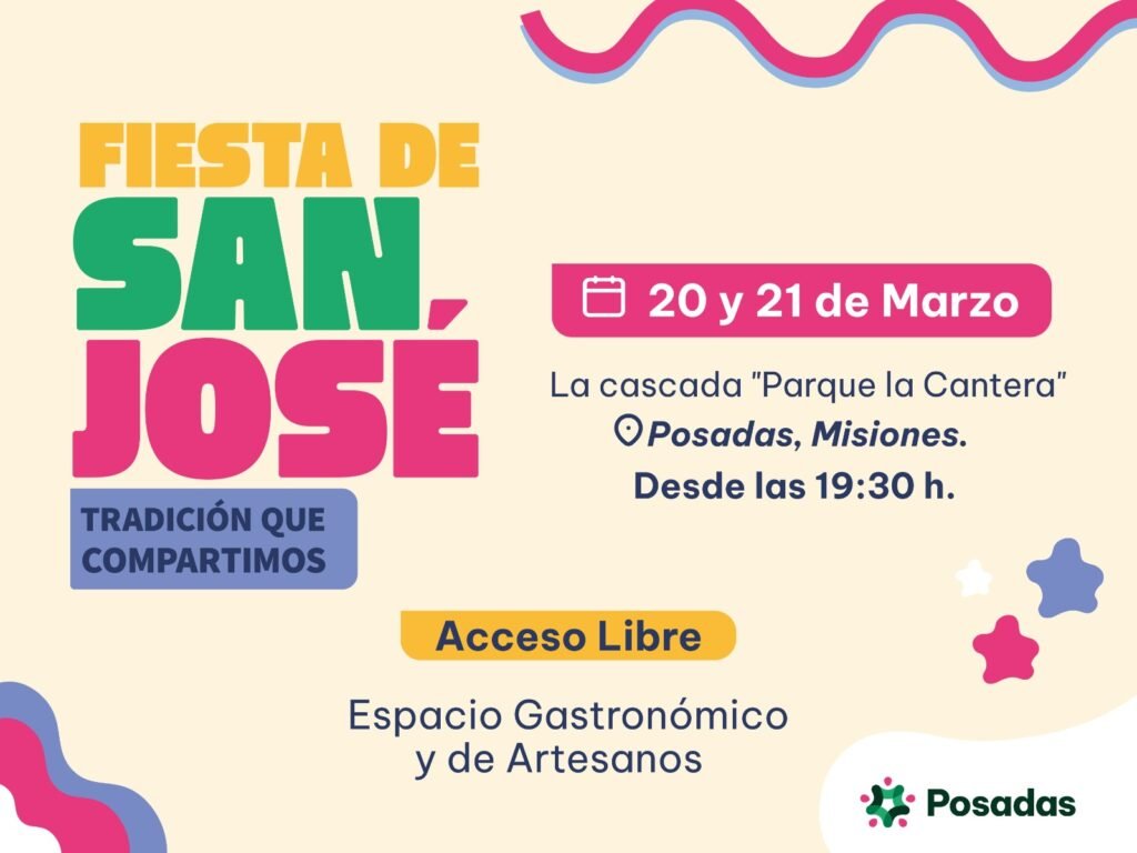 La Municipalidad de Posadas informa que ya se encuentra todo dispuesto para la celebración de la Fiesta de San José, bajo el lema “Tradición que Compartimos”, que se desarrollará este viernes 20 y sábado 21 de marzo en la explanada del Parque La Cascada