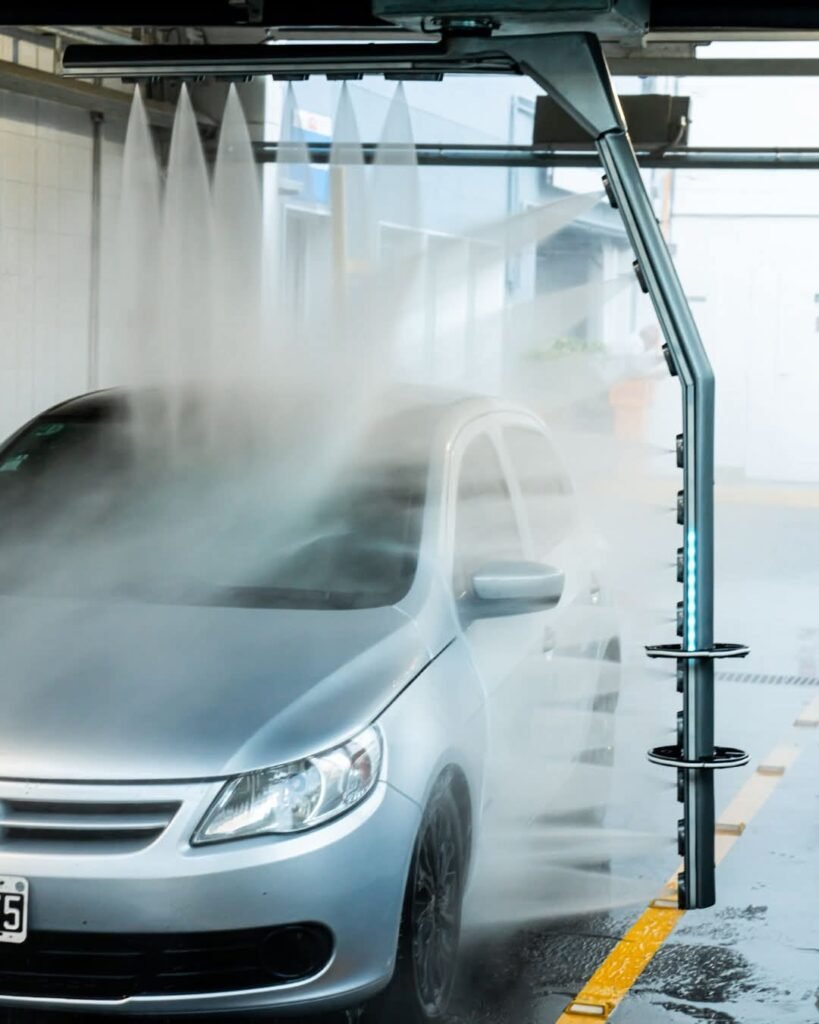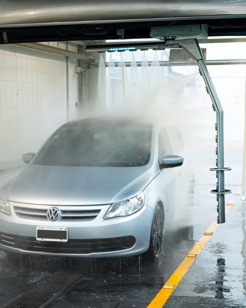 Forte explica que este modelo representa un salto tecnológico respecto de los lavaderos automáticos con cepillos, que con el tiempo terminaban marcando la pintura. El sistema que llega a Posadas trabaja exclusivamente con agua a presión y champú vehicular, seguido de un enjuague y un secado final con sopladores de alta potencia. Todo el proceso está milimétricamente calibrado para aplicar la cantidad justa de agua, jabón y cera protectora, lo que garantiza un lavado rápido, eficiente y sin fricción. Incluso incorpora sensores que detectan el tamaño y la posición de las ruedas para limpiar llantas y neumáticos sin contacto alguno.