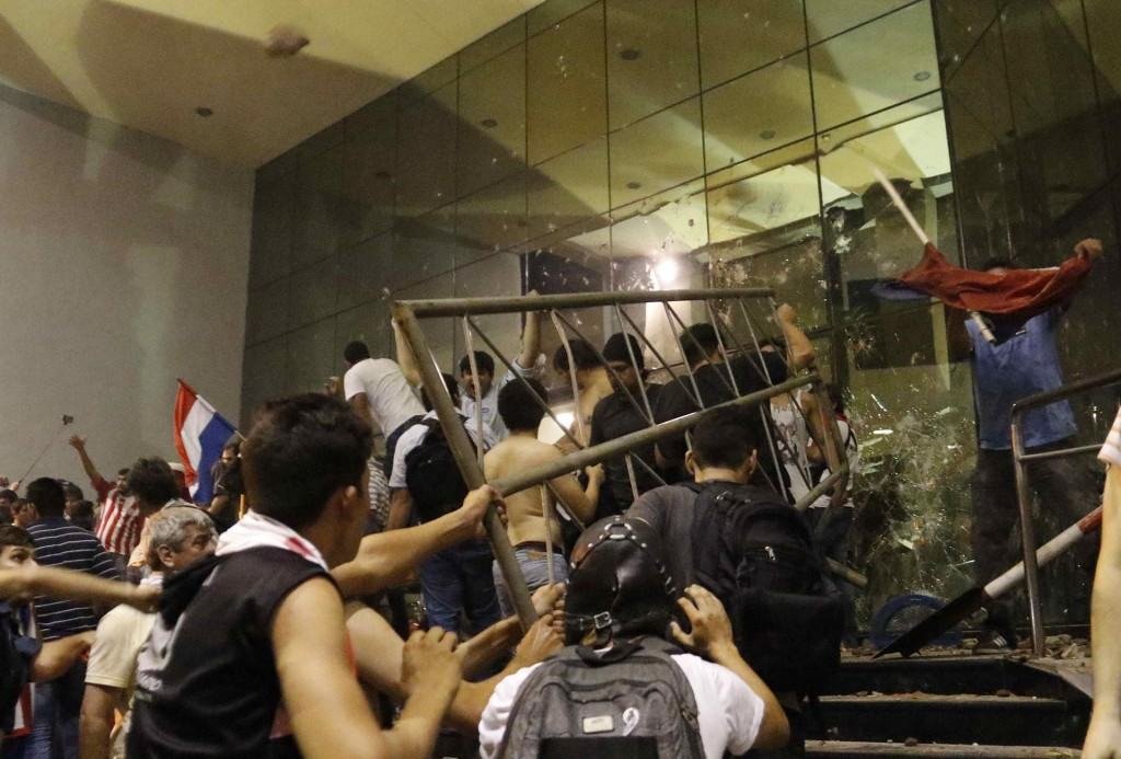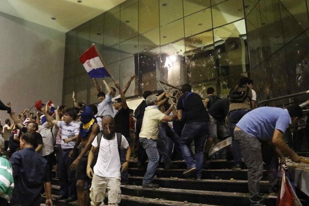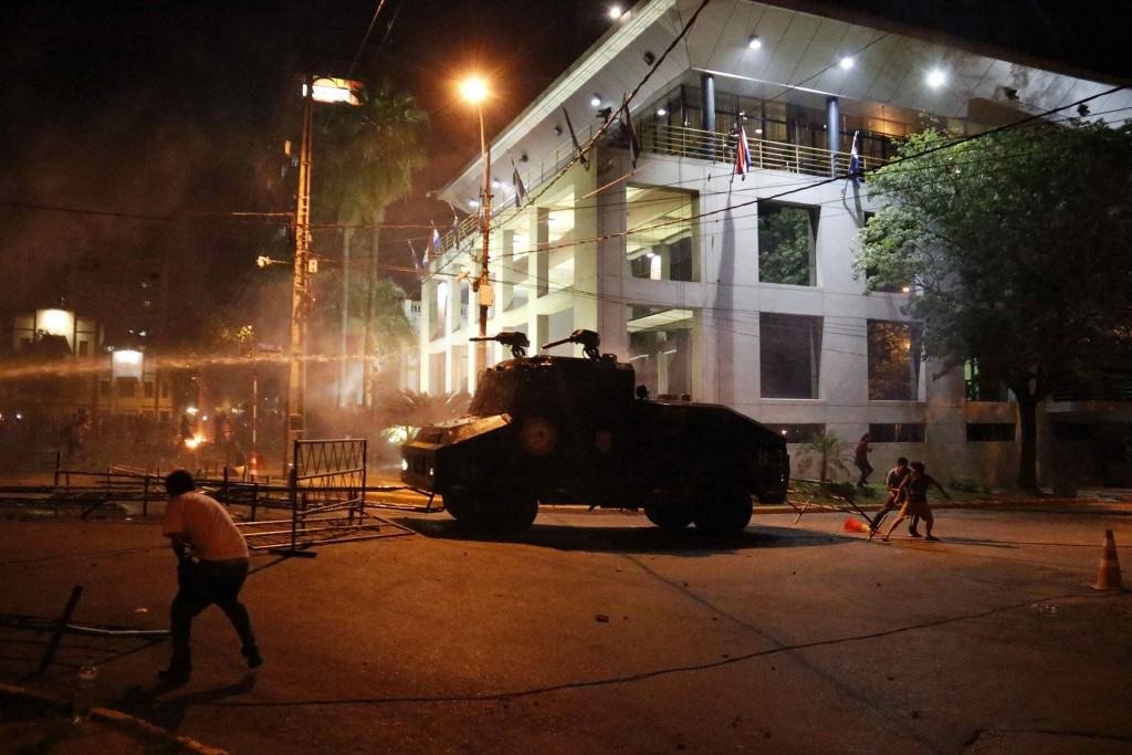 Al llegar al Congreso, un grupo comenzó a lanzar piedras contra el Parlamento, pero fueron dispersados por carros hidrantes y por policías antidisturbios. Imágenes de televisión mostraron a varios hombres ensangrentados y a otros rompiendo los vidrios de un patrullero, mientras una ambulancia llevaba a algunos heridos. “Se consuma el golpe. Vamos a resistir e invitamos a la gente a que resista con nosotros”, dijo la senadora opositora Desiree Masi.