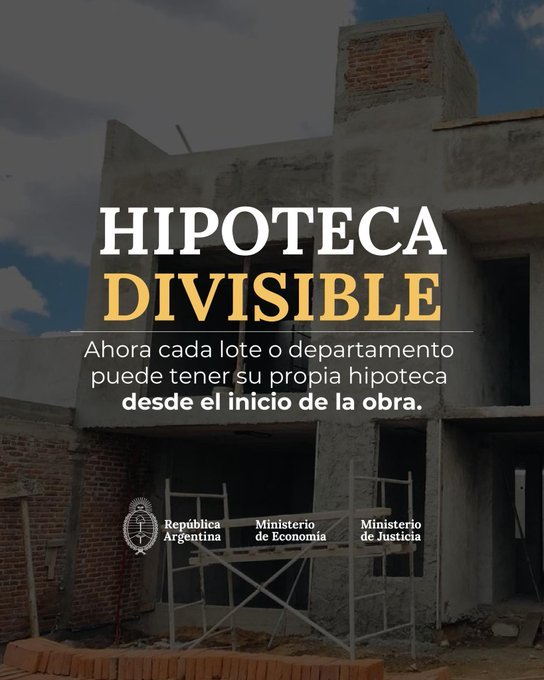 Con la Resolución Conjunta 2/2025, los Ministerios de Economía y Justicia oficializaron la implementación de hipotecas divisibles sobre proyectos en construcción. El objetivo es ampliar el acceso al crédito hipotecario, dinamizar la construcción y reducir el déficit habitacional.