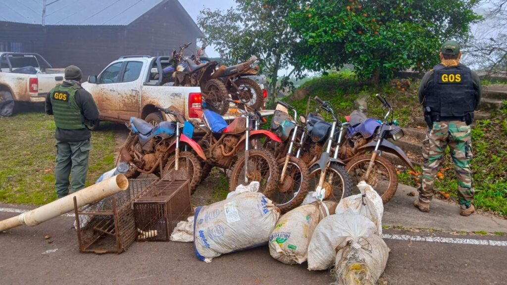 La patrulla halló siete motocicletas ocultas en distintos puntos de la reserva, todas provenientes de Brasil. Según las autoridades, eran utilizadas para desplazarse en la selva acortando distancias y para transportar piezas de fauna obtenidas de manera ilegal.