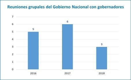 Del total de reuniones conjuntas (2016/2018) en las que participó el Primer Mandatario sólo cuatro lo fueron con todos o casi todos los gobernadores de las provincias argentinas; una de ellas en 2016, dos en 2017 y una en 2018 (la celebrada recientemente por el Presupuesto). En ellas se buscaba promover discusiones de fondo o alcanzar determinados consensos políticos.
