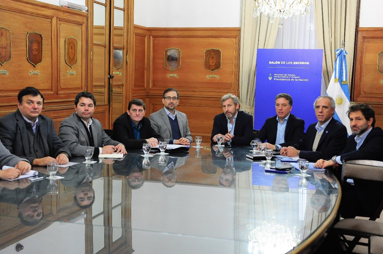 El ministro del Interior, Obras Públicas y Vivienda, Rogelio Frigerio, y su par de Hacienda, Nicolás Dujovne, se reunieron hoy con los ministros de Economía de Misiones, Adolfo Safrán; de Río Negro, Agustín Domingo; y de Santiago del Estero, Atilio Chara. Además, estuvo el ministro de Energía y Recursos Naturales de Neuquén, Alejandro Monteiro.