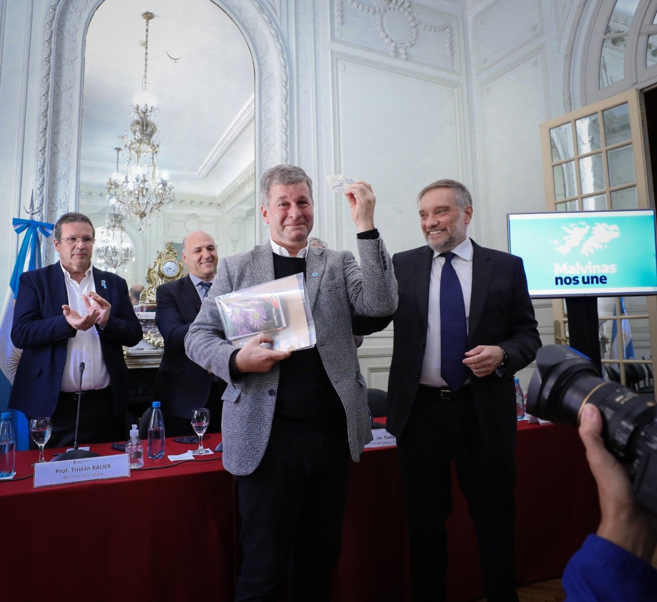 Participaron del acto ministros de Ciencia, Tecnología e Innovación, Daniel Filmus; Cultura, Tristán Bauer, el secretario de Justicia, Juan Martín Mena, y autoridades nacionales, legisladores, artistas, académicos y funcionarios del Ministerio de Relaciones Exteriores, Comercio Internacional y Culto.