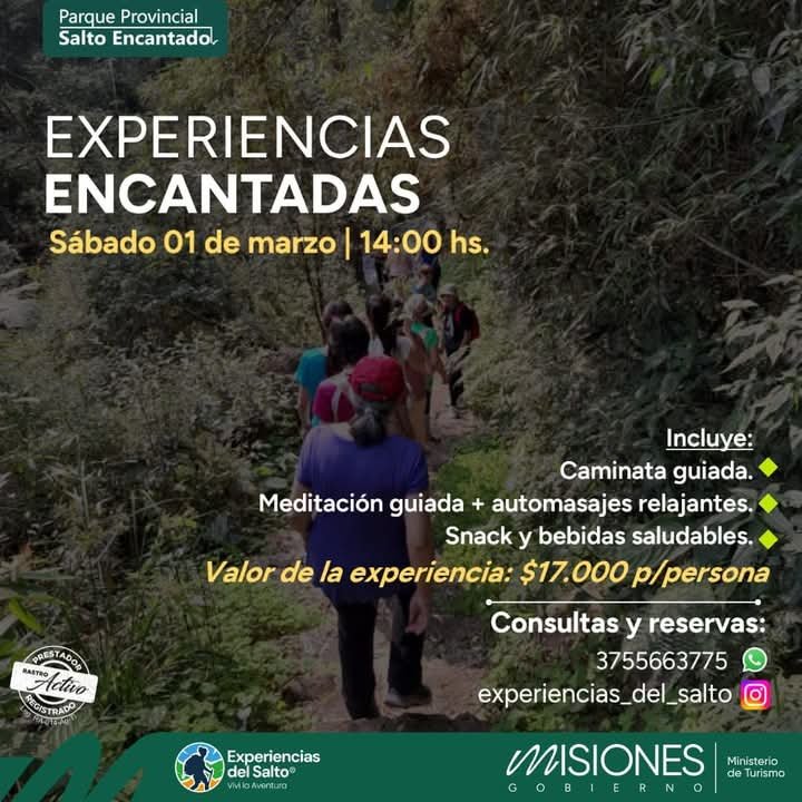 En este escenario, el sábado 1 de marzo, a las 14 hs, se llevará a cabo “Experiencias Encantadas”, una jornada de senderismo consciente y meditación, guiada por especialistas. Durante la actividad, los participantes recorrerán senderos inmersos en la selva misionera, experimentando la armonía del entorno y la energía del agua en movimiento.