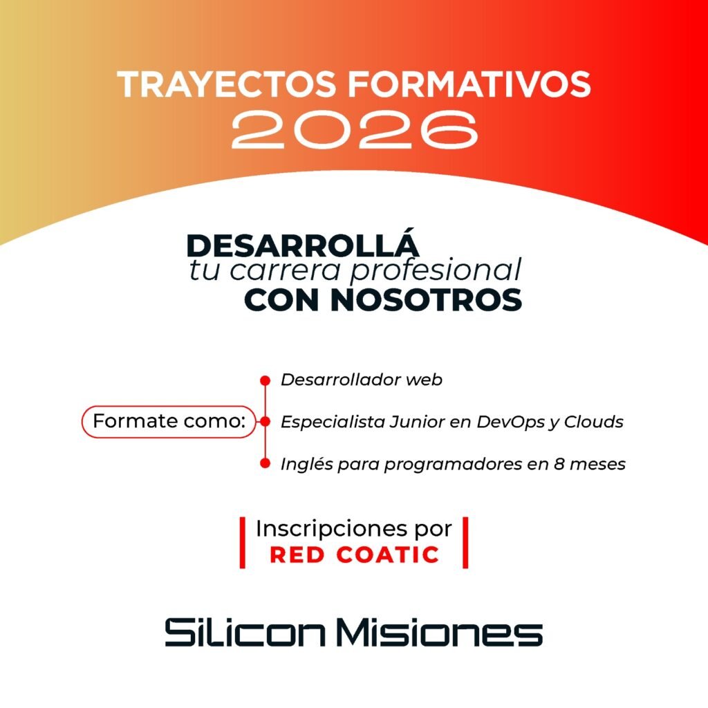 Silicon Misiones anunció el lanzamiento de tres trayectos formativos estratégicos, con una duración de 8 meses cada uno y en modalidad virtual para toda la provincia de Misiones, orientados a fortalecer el talento tecnológico y