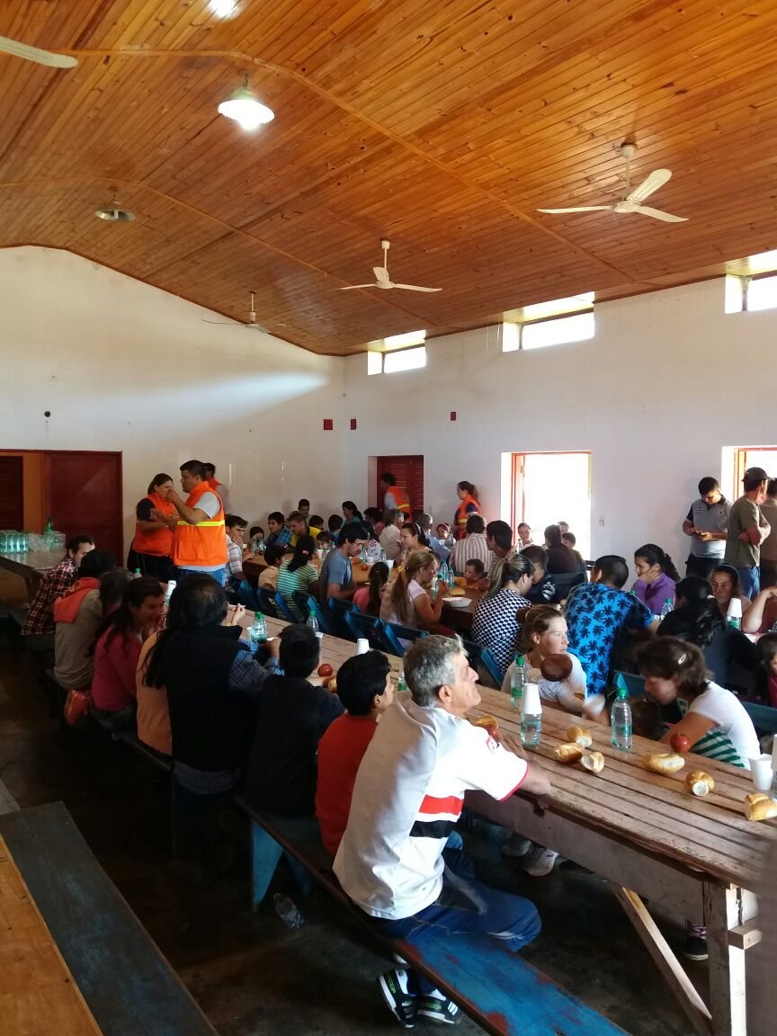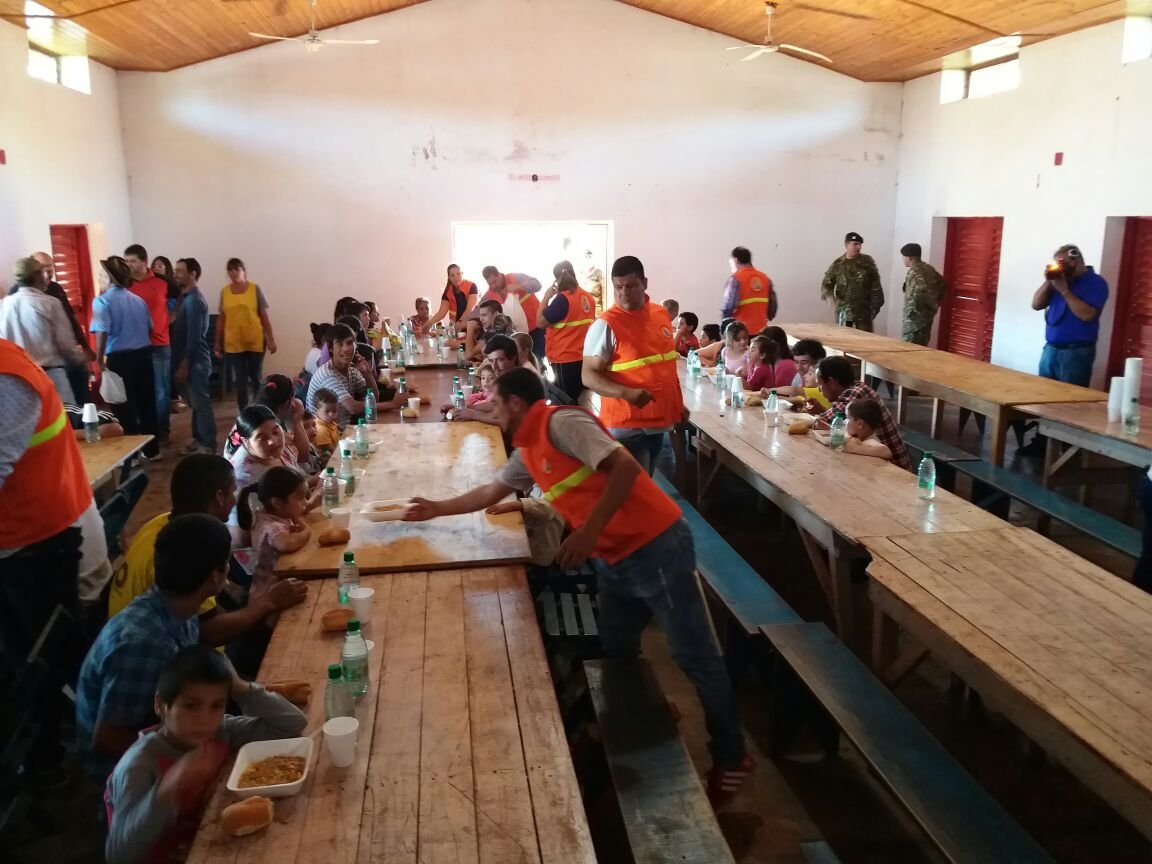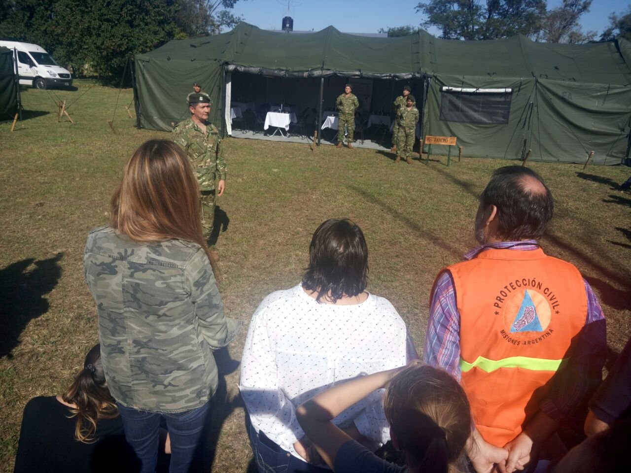 Los supuestos evacuados llegaron al centro de evacuación compuesto por el SUM de la municipalidad y una carpa del ejército. En ese mismo lugar eran atendidos por equipo de Salud, de la Cruz Roja , Rotary y Caritas, según cada necesidad.