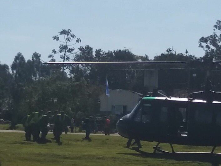 También se dramatizo la escena de un vecino mordido por una serpiente , que luego de ser estabilizado fue  trasladado por la ambulancia hasta el helicoptero del ejército para su derivación a un centro asistencial.