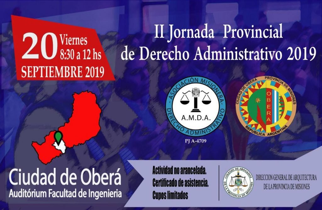 El evento es organizado por la Asociación Misionera de Derecho Administrativo (AMDA), cuyo Presidente Dr. Matias Forés Director General de Jurídicos de Fiscalia de Estado de la Pcia. de Misiones junto con la Municipalidad de Oberá, a cargo del Intendente Carlos Fernández.
