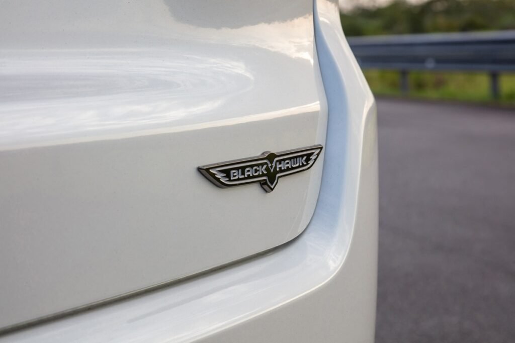 Además, incorpora en el interior tapizados y materiales exclusivos para esta versión: combinando cuero con alcántara y costuras en contraste con bordado “Blackhawk” y la tela interior de techo es color negro.