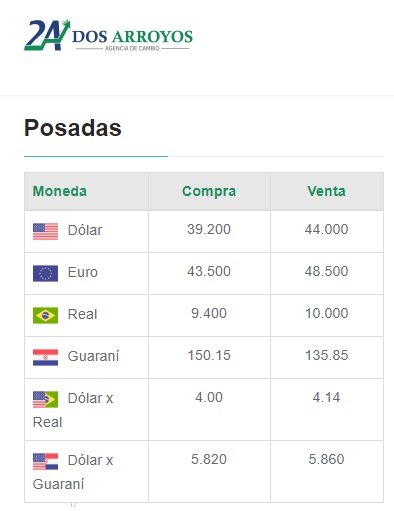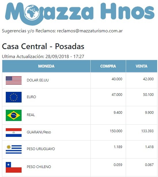 Desde mañana, martes (26/07) la casa de cambios Dos Arroyos comienza a recibir billetes en Moneda Extranjera de Turistas No residentes.