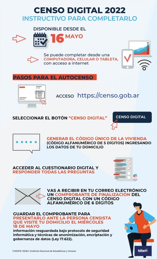 Desde hoy, se podrá acceder al cuestionario digital a través de un móvil, computadora u otro tipo de dispositivo electrónico y el comprobante de realización deberá mostrarse al censista que concurra al domicilio el 18 de mayo, cuando se realice el registro estadístico de modo presencial en simultáneo en todo el país.