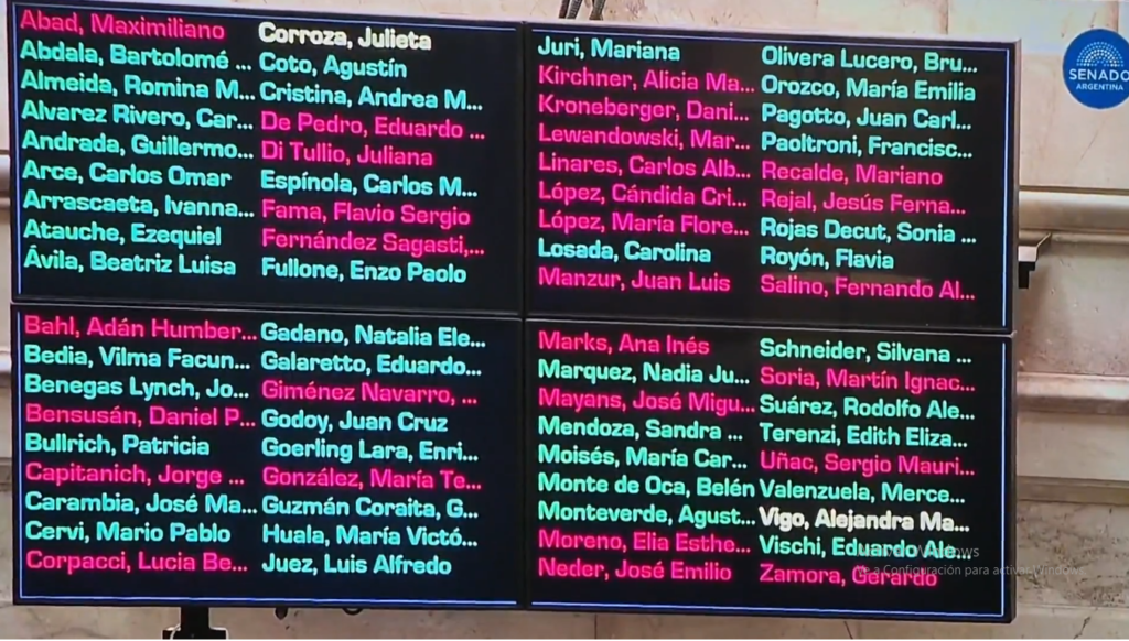 En contraste, la senadora Alejandra Vigo, de Provincias Unidas, se abstuvo en la votación general y en todas las particulares.