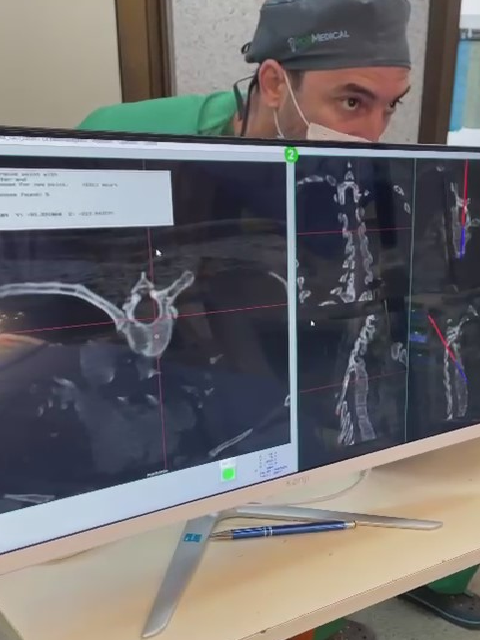La cirugía, que representa un salto cualitativo respecto a la tradicional cirugía “a cielo abierto”, permite una recuperación más rápida y segura para el paciente. Gracias al uso de un sistema de navegación computarizado, se logró colocar tornillos con mayor precisión y con una exposición significativamente menor a los rayos X.