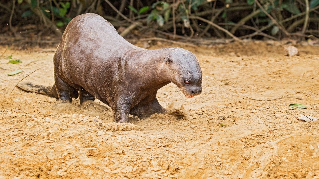 Alondra se divierte en el agua y ya caza sus primeras presas vivas en el corral de pre-suelta de la isla San Alonso. Después de medio siglo de extinción en Corrientes, ella será el primer ejemplar de lobo gargantilla o nutria gigante en ser reintroducido en el Parque Nacional Iberá.