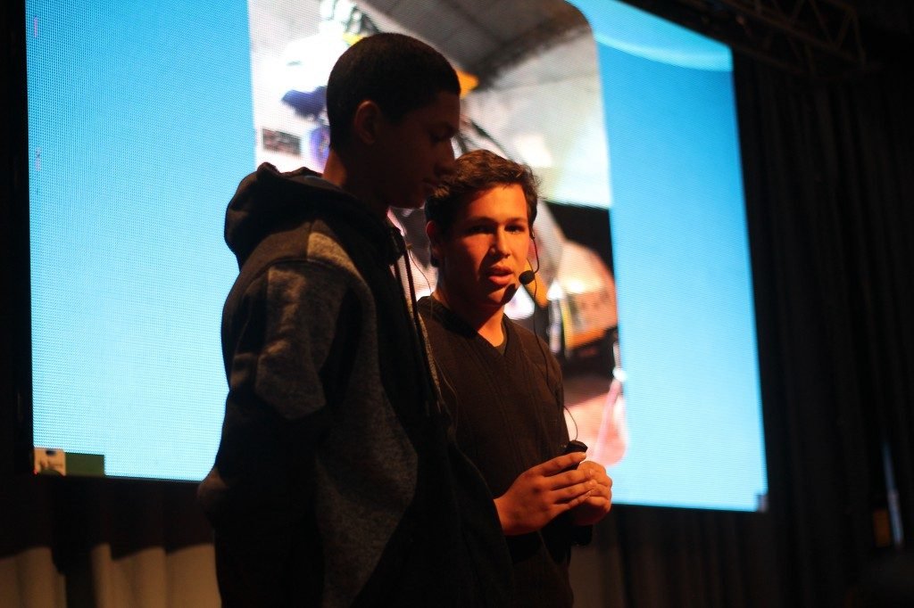 Para cerrar el primer bloque, Juan Carlos Beltrán y Adrián Gómez, estudiantes de la EPET 25 de Campo Grande, contaron su experiencia en la fabricación de un robot usando la estructura de un automóvil, más conocido como un “transformer”. “Era una idea loca”, manifestaron, “pero con el apoyo adecuado y trabajando sin perder el objetivo, logramos realizarlo”. El mensaje era sencillo, pero motivador, realizar imposibles está al alcance de la voluntad y lo demostraron materializando un prototipo que sólo se veían en películas de Hollywood. “Además de llegar a nuestro objetivo, aprendimos muchas cosas, debemos ser la única EPET de la provincia en aprender sobre pintura automotriz”, sostuvieron entre risas.
