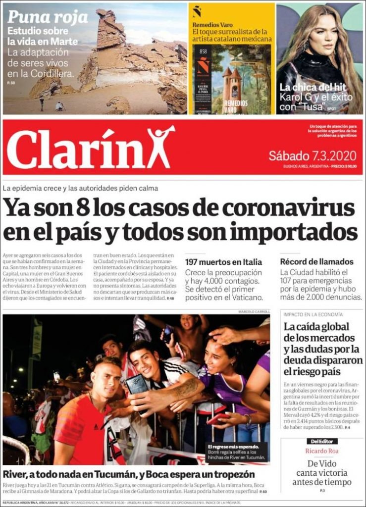 Aseguró además que el país “trabaja en una fase de contención y observando lo que sucede en Europa” y recomendó el “aislamiento social” para mayores de 65 años y “minimizar las actividades con público”, así como “evitar el contacto con personas que hayan llegado de áreas de circulación del virus, aunque estén asintomáticas”.