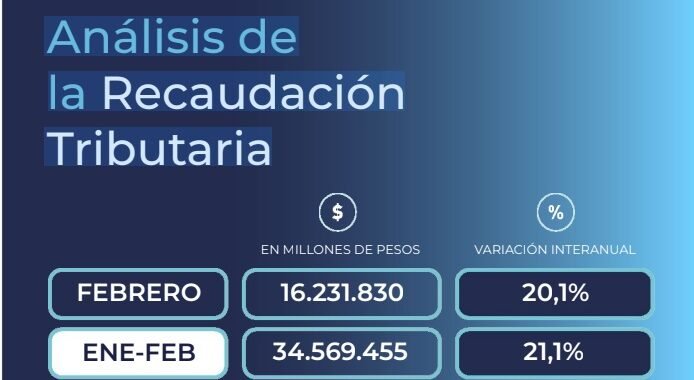 En términos agregados, la recaudación del primer bimestre sumó $34.569.455 millones, con un crecimiento interanual de 21,1%.