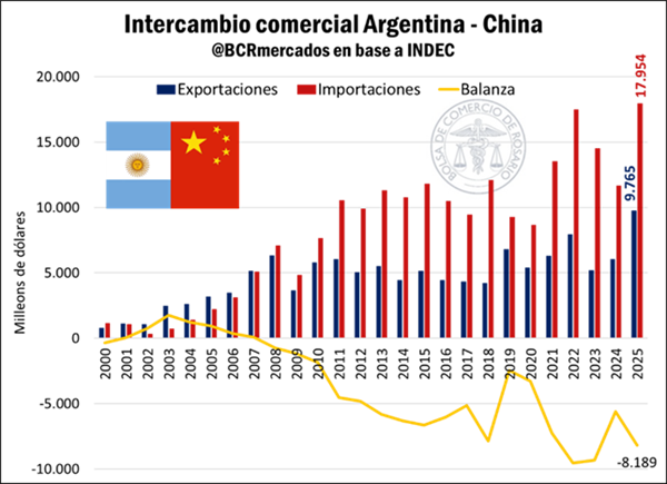 Según un informe de la Bolsa de Comercio de Rosario, el Gobierno consolida a China como socio clave, pero el déficit comercial se amplía