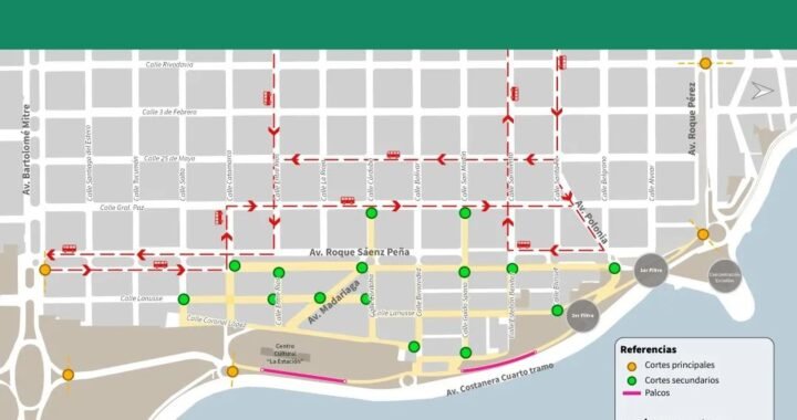 La circulación vehicular en los días de desfile se verá interrumpida desde las 13 hs. Se recomienda transitar con precaución en los sectores afectados y prestar atención a las indicaciones de los inspectores uniformados.
