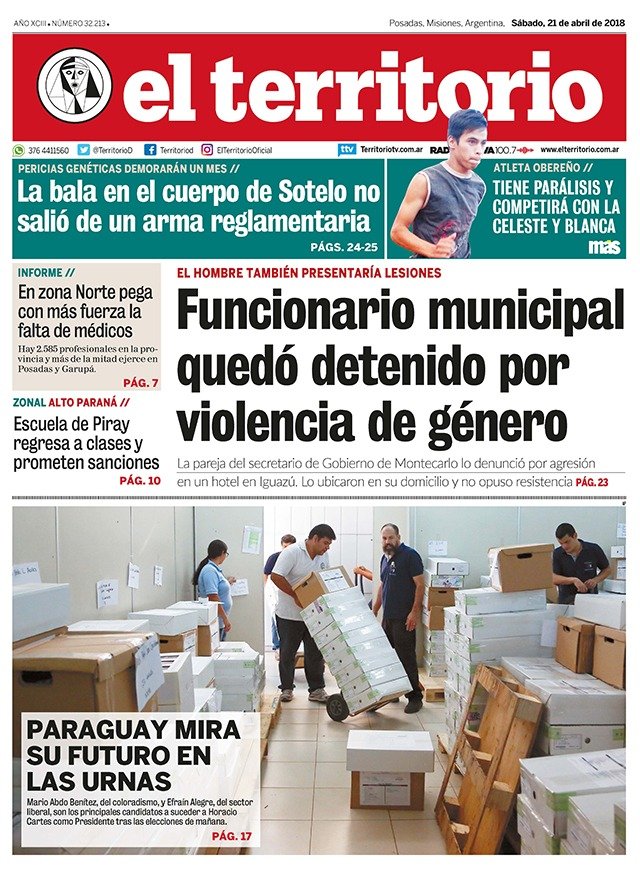A continuación reproducimos las tapas de los principales diarios impresos del país. La detención de un funcionario municipal en Montecarlo por denuncias de violencia de género ocupan la agenda de los medios locales. A nivel nacional lo importante es el camino al Mundial y los avances en las causas por corrupción/Odebrecht