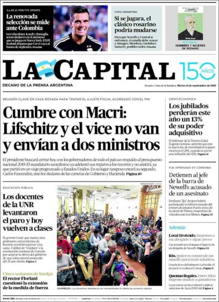 A continuación reproducimos las tapas de los principales diarios del país. Este martes se reúnen, el Presidente con los Gobernadores, que llevan afilados los lapices para debatir “a agenda abierta” (según Frigerio) todo lo concerniente al Presupuesto 2019, el ajuste fiscal y otras medidas que impactarán en todo el año que viene.