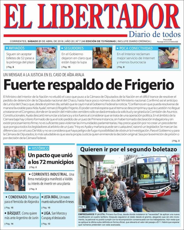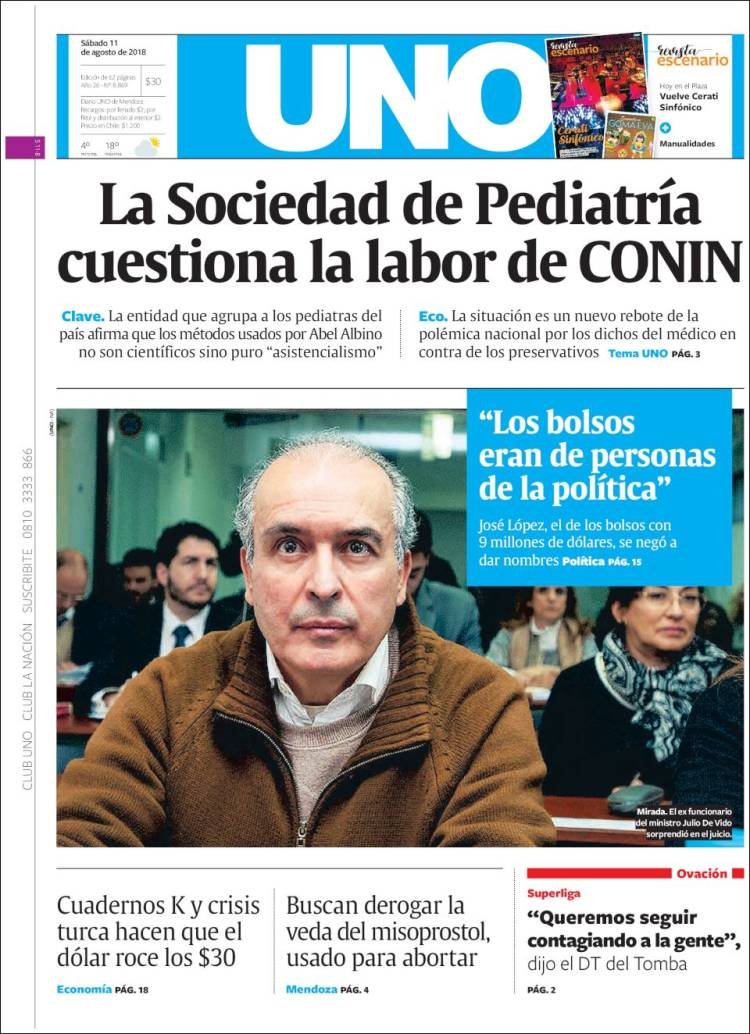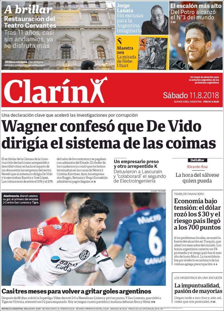 A continuación reproducimos las tapas de los principales diarios del país. El tema principal sigue siendo la saga del “loco de los cuadernos”, ahora con los empresarios arrepentidos, que prendieron el ventilador con tal de esquivar las detenciones, son seis los “arrepentidos” que quieren colaborar con la Justicia.