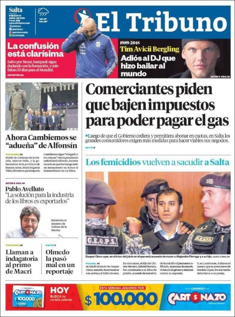Las tapas de los diarios del sábado 21/4: El camino al Mundial y la detención de un funcionario en Montecarlo por violencia de género
