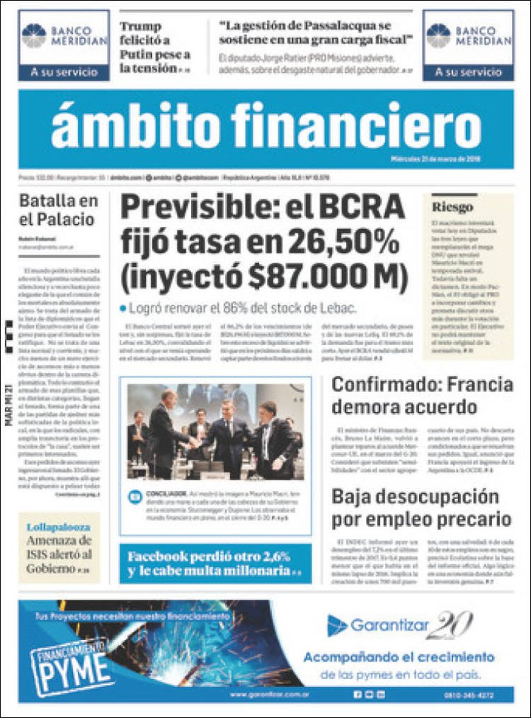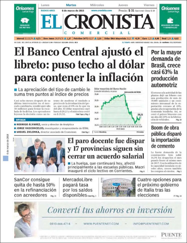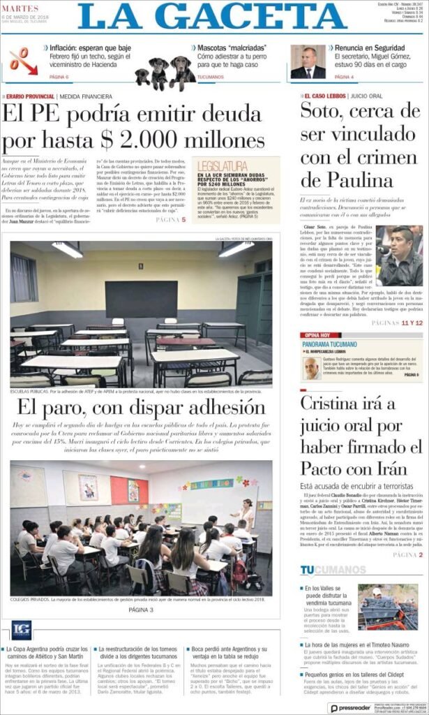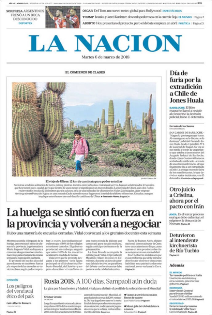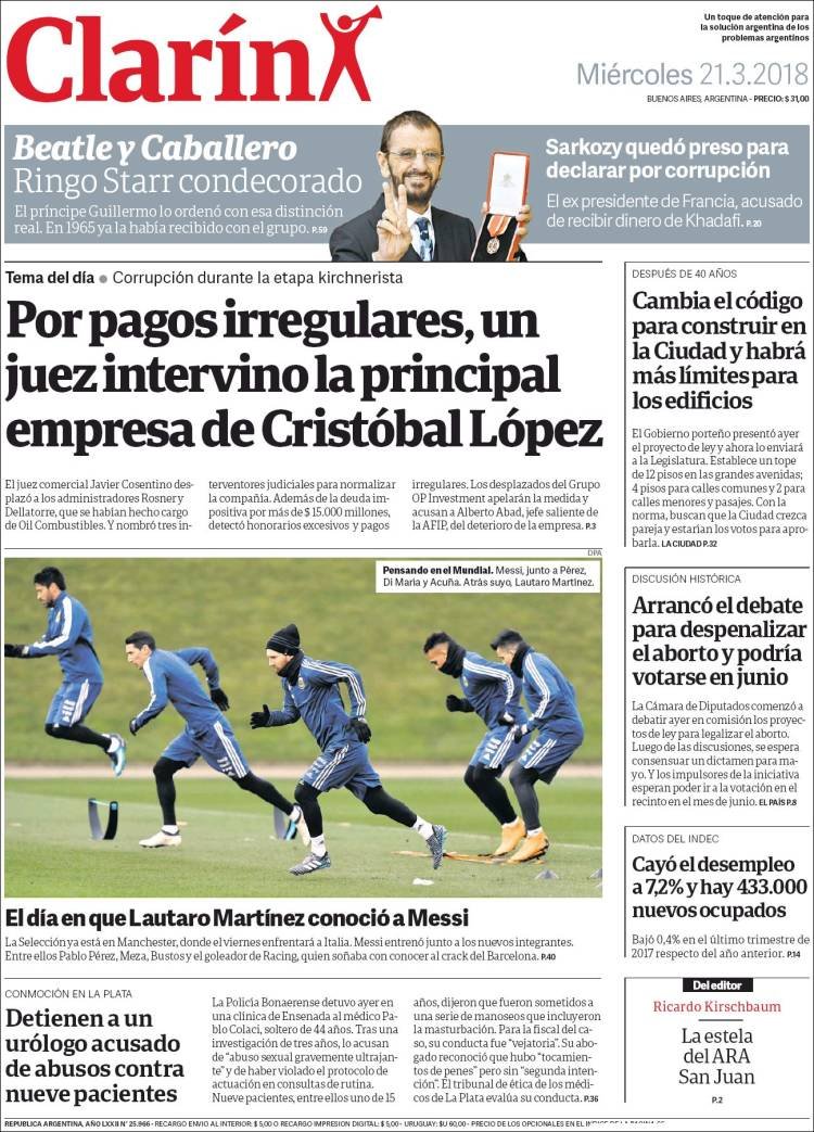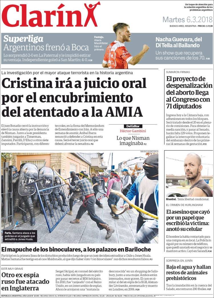 A continuación, reproducimos las tapas de los principales diarios del país. En lo local sigue el conflicto por el peaje de Colonia Victoria, mientras en lo nacional el debate por el aborto ocupó gran espacio, junto a los datos del desempleo, la venta de Lebacs,