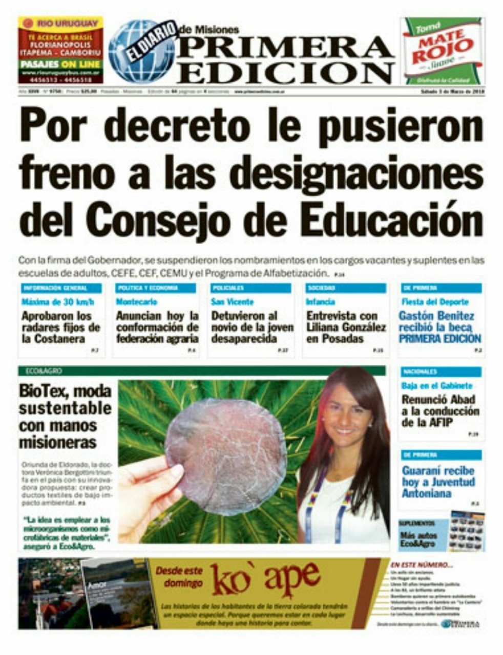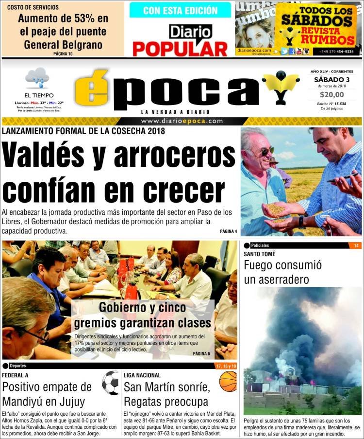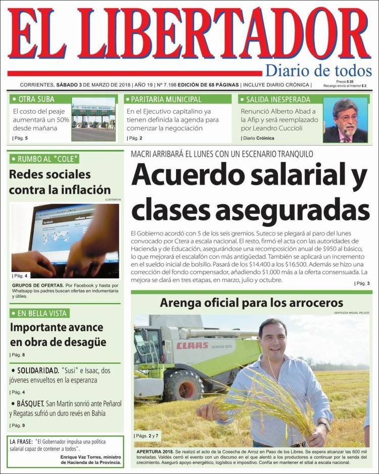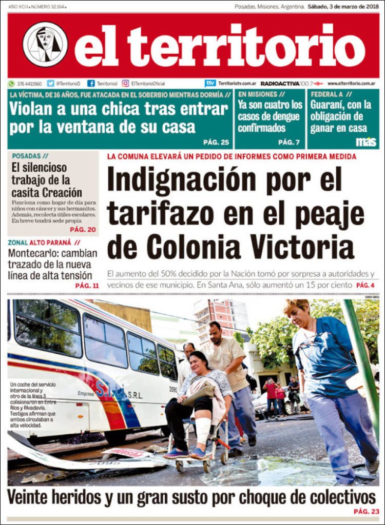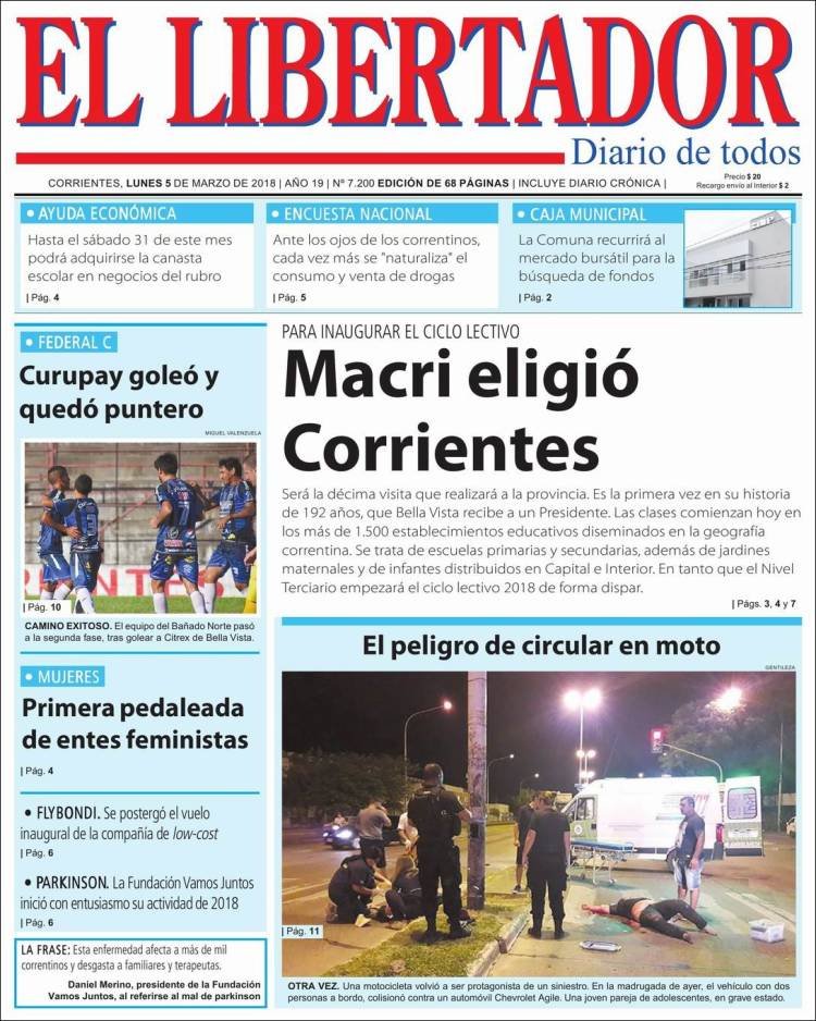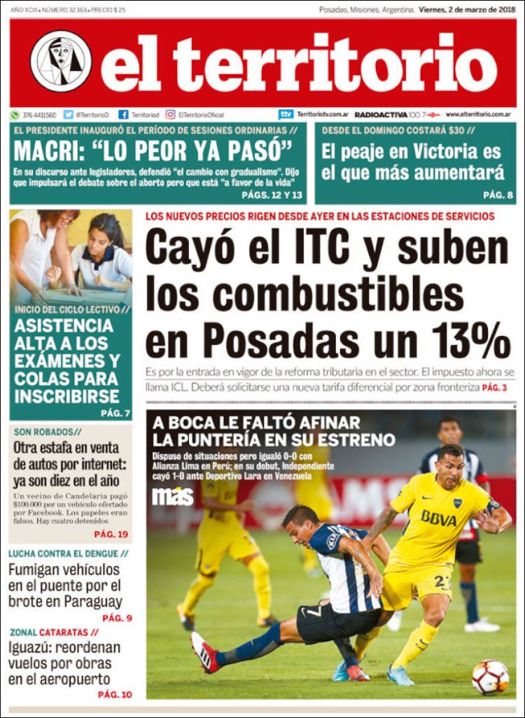 A continuación, reproducimos las tapas de los principales diarios de del país. Los temas predominantes son la apertura de sesiones a cargo de Mauricio Macri, la balanza comercial con Brasil, el precio de los combustibles en Misiones con la reforma impositiva.