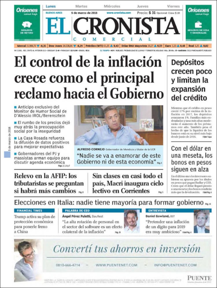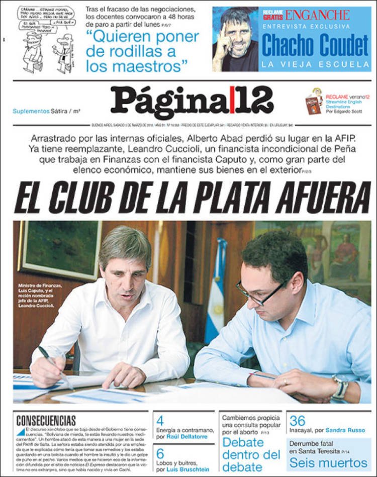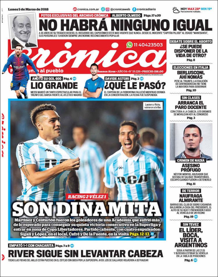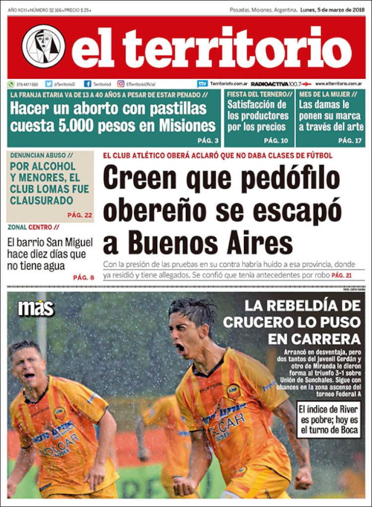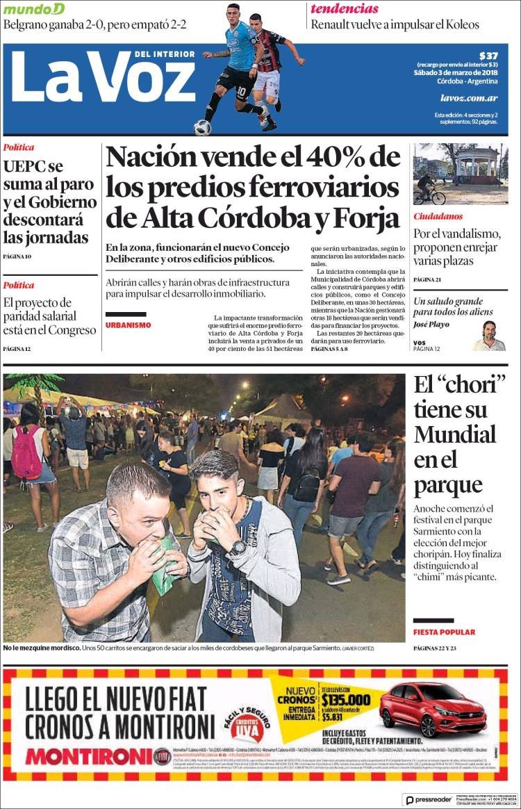 A continuación, reproducimos las tapas de los principales diarios de del país. Los temas predominantes son la apertura de sesiones a cargo de Mauricio Macri, el crecimiento de la Economía, la deuda, el conflicto con Bolivia y la violencia de género en Misiones.