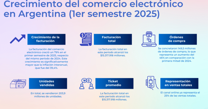 El primer semestre de 2025 evidenció con cifras este cambio. Y es que según la Cámara Argentina de Comercio Electrónico (CACE), la facturación del e-commerce alcanzó $15.317.918 millones, un crecimiento del 79 % respecto al mismo período de 2024, muy por encima de la inflación del 39,4 % interanual.