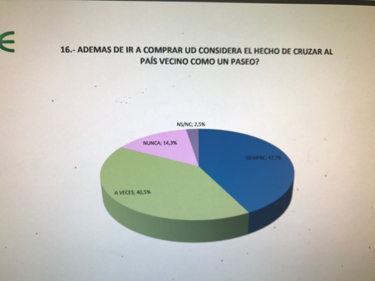 La asociación empresaria, concluyó una encuesta a los consumidores locales, en la que indagó sobre las preferencias de compra, las razones que los llevan a cruzar el puente Roque González, qué opinión tienen de la atención en el comercio posadeño, cuánto tracciona el turismo encarnaceno para la permanencia en esa ciudad, qué compran, cuánto gastan, etc.