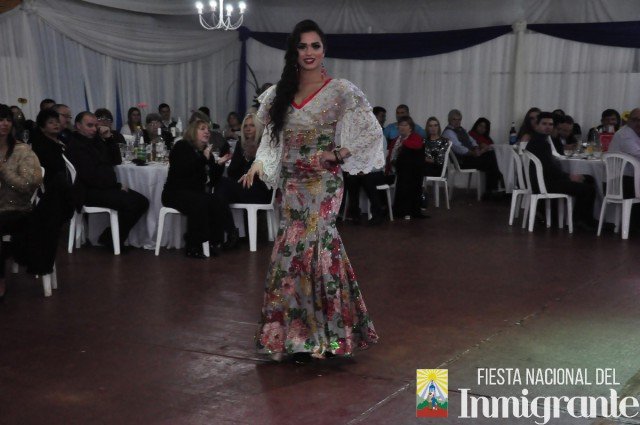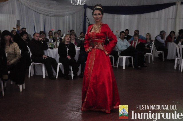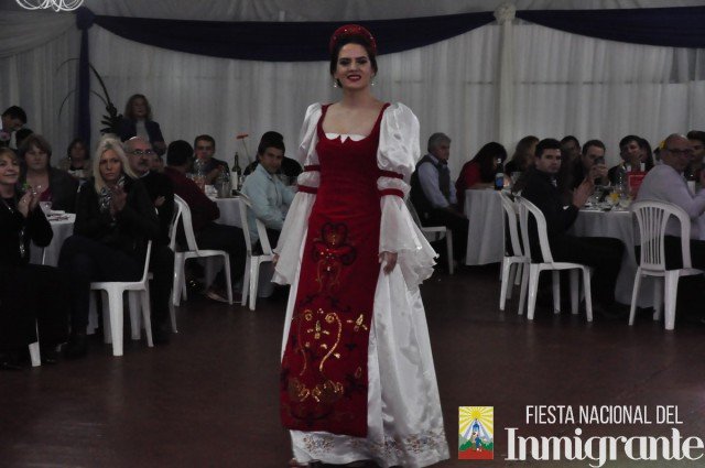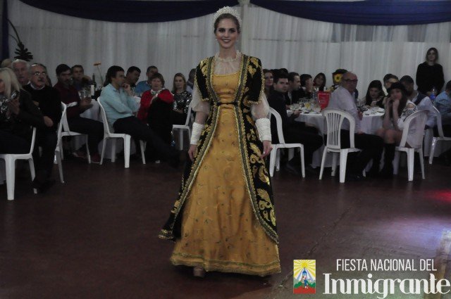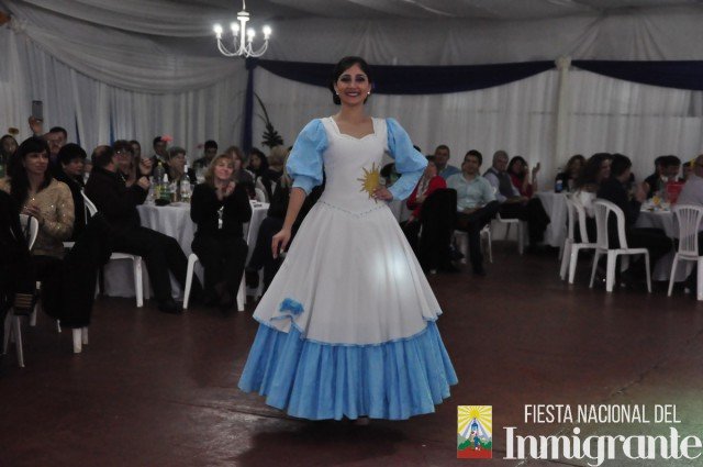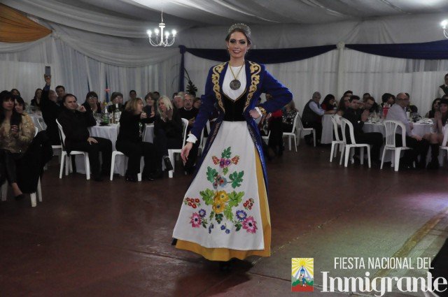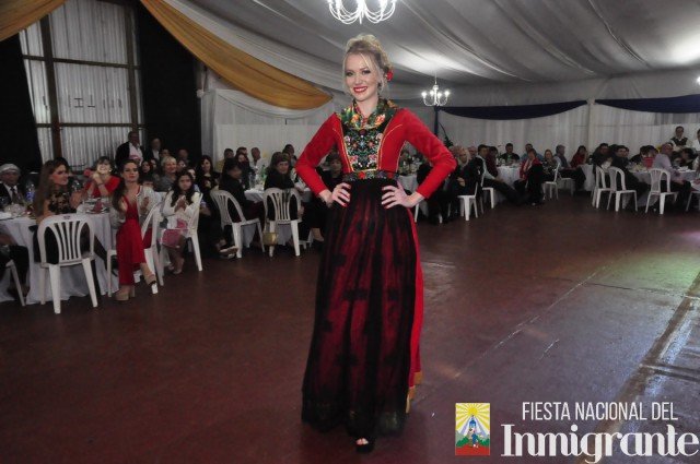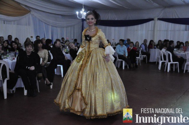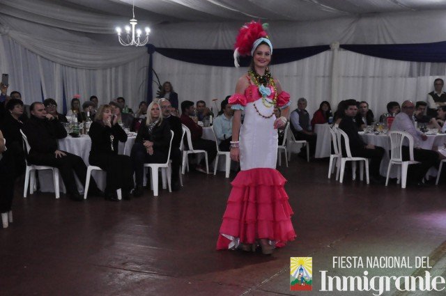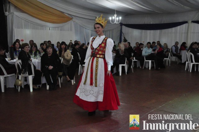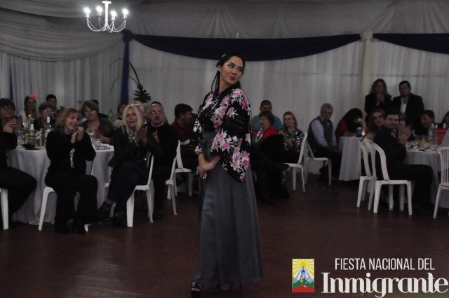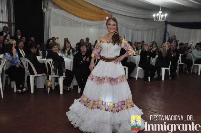 La segunda pasada fue en traje de noche, con vestidos gentilmente cedidos por la casa comercial Fortuna Lis. Mientras que la tercera y última pasada fue en los majestuosos y llamativos Trajes Típicos, cada uno con una historia relacionada con su país de origen. Fue la oportunidad para que cada una de la candidatas se dirigiera al público, invitando a la próxima Fiesta Nacional del Inmigrante, pero en especial a disfrutar de algún plato típico o actividad particular en cada una de las colectividades.