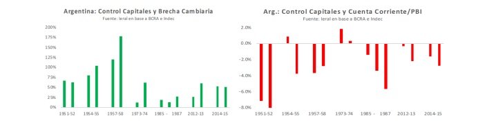 Las experiencias con controles de cambio en nuestro país también muestran que a medida que cae el tipo de cambio real, sube la magnitud de la brecha cambiaria y se deteriora la cuenta corriente.