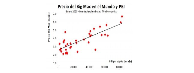 Teniendo en cuenta los mencionados precios de los sándwiches de McDonald’s para Argentina y Estados Unidos, se corrobora también que los precios en nuestro país resultan considerablemente más bajos que en el país del norte tanto con la cotización “oficial” como con la “no oficial” del tipo de cambio.