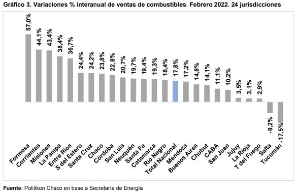 Los datos de marzo muestran, además, una aceleración en el volumen de venta respecto al mes anterior: +4,6% intermensual, destaca un informe elaborado por la consultora Politikon Chaco en base a datos de la Secretaría de Energía de la Nación.