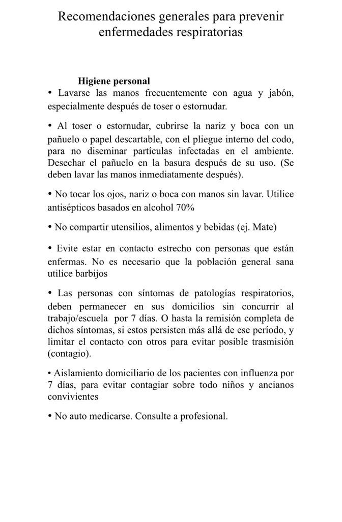 -El personal de las escuelas debe estar atento de observar si los alumnos presentan síntomas de gripe y comunicar a los respectivos padres y referentes de Salud escolar.
