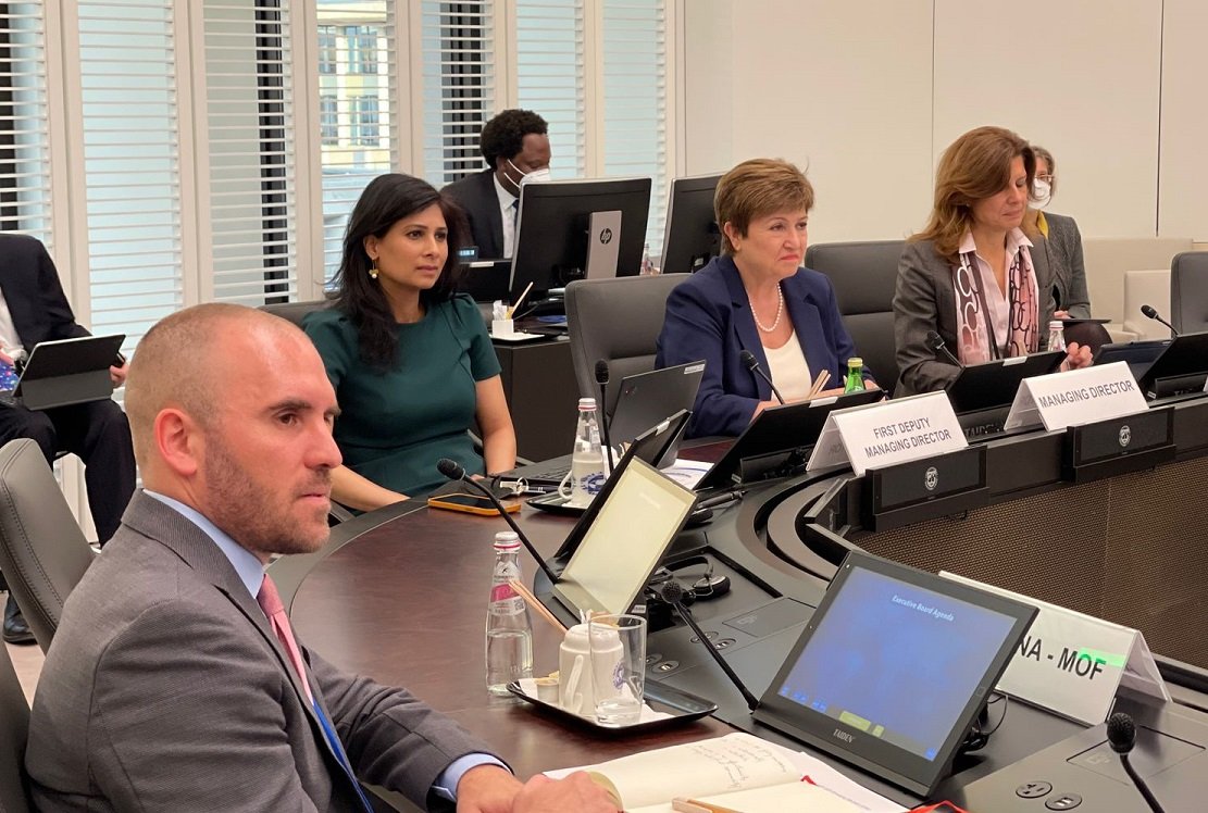 Durante la jornada, el titular del Palacio de Hacienda también mantuvo un encuentro con representantes del FMI, con quienes dialogó sobre el rumbo del entendimiento alcanzado entre la Argentina y el organismo. En esta reunión, Guzmán estuvo acompañado por Sergio Chodos, director por el Cono Sur ante el organismo. En tanto, en representación del Fondo, estuvieron presentes el director para el Hemisferio Occidental, Ilan Goldfajn; la subdirectora en el Departamento del Hemisferio Occidental, Julie Kozack; y el jefe de la misión para las negociaciones con la Argentina, Luis Cubeddu.