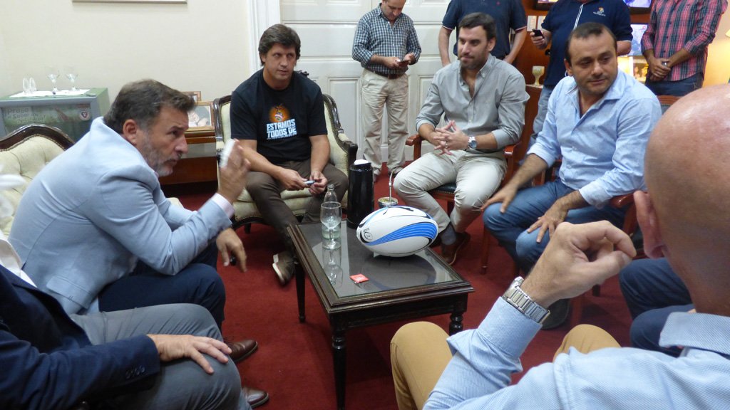 Las actividades de Branca en Misiones comenzaron al mediodía en Casa de Gobierno donde hubo un primer encuentro con las autoridades de URUMI y funcionarios del Gobierno provincial. Allí el representante de Fratelli Branca explicó como es el programa “Branca único como el corazón del rugby”.
